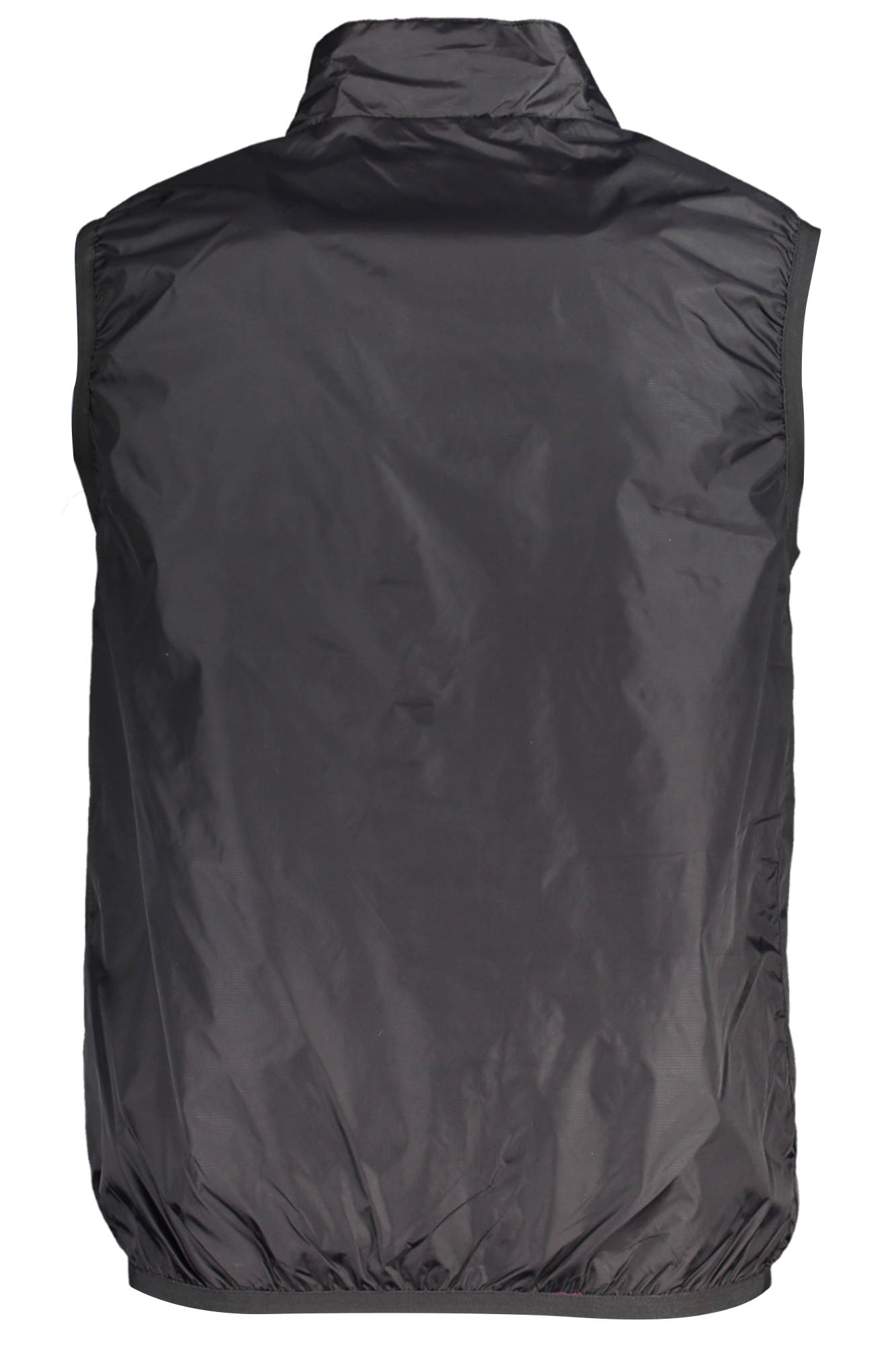 Sleeveless, waterproof, 2 outside pockets, 1 inside pocket, zip, print, logo